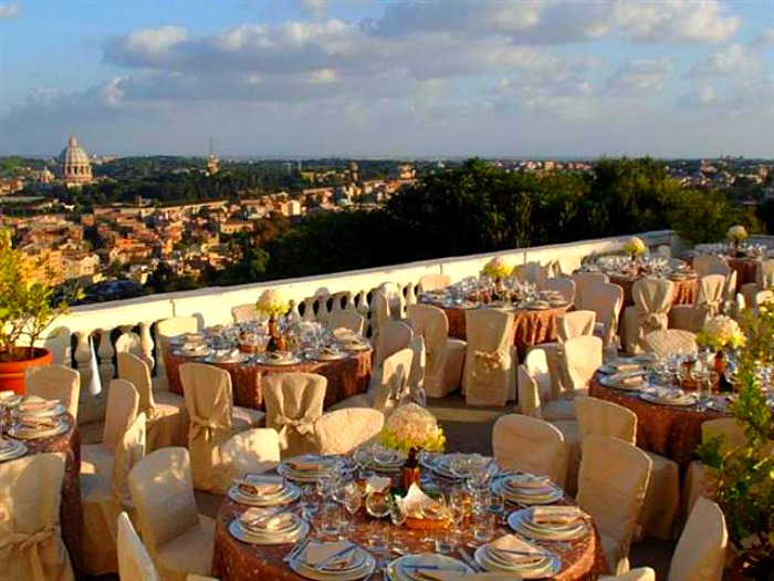 Elegant historic Roman villa of 1800, surrounded by acres of lawn, ideal location for any wedding, from the most intimate to the most lavish, with the ability to accommodate more than 1,000 guests. In addition, it offers a breathtaking view of Rome.