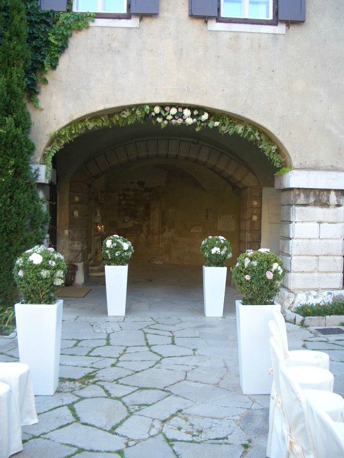 The Property, perched on a rocky karst above the sea, enjoys a breathtaking view over the Gulf of Trieste. Due to its location and the warm atmosphere of the historic home, which still exists, today is a perfect location for elegant and refined weddings.