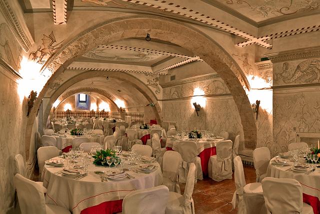 The halls available for wedding receptions are of different sizes and can accommodate from 40 to 170 people: the Prince's room, is ideal for intimate receptions up to 40 guests; the old deconsecrated chapel is ideal for elegant banquets up 50 people; the Knights' Hall has a capacity up to 120 guests, who can become to 170 being in communication with the Chapel Hall; the Ballroom, suitable environment to celebrate an in style wedding, can accommodate up to 150 people.