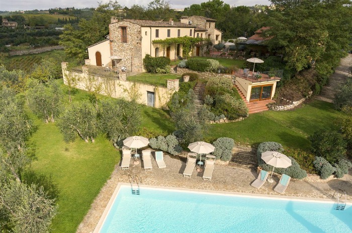 The Relais is located about 300 meters above sea level and has a dominant position in the valley of the River Pesa. The outdoor areas consist of a beautiful garden place on multiple levels and it's characterized by a beautiful lawn and a great variety of plants and flowers. The wonderful swimming pool overtops the Pesa valley.