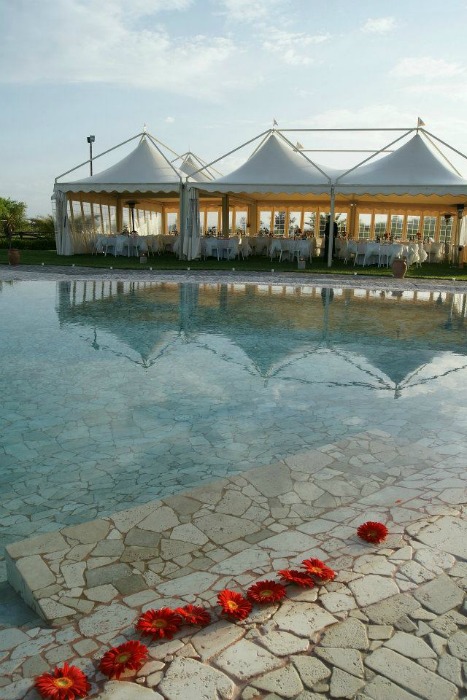 The price for a wedding menu served at the table starts from Euro 70, including wedding cake, drinks and house wine. If you wish to organize the wedding reception at the beautiful pool of the farm, it's to consider the cost of the marquee.