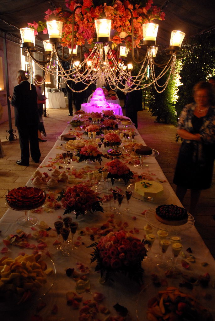 A complete Menu with aperitif buffet, two first courses, one second course and dessert and fruits buffet. Drinks included, Flower arrangements.