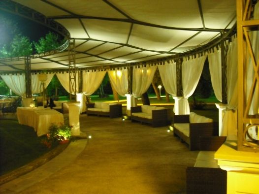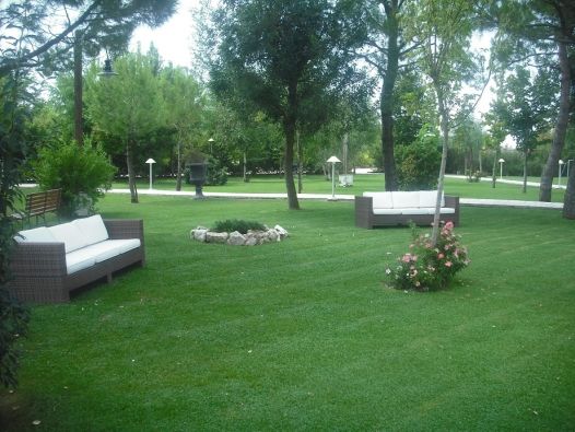 Large garden that can be equipped with marquees on request .