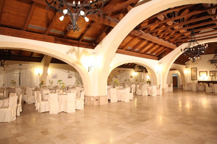 The masseria has a stylish and bright reception room, seating up to 360 guests.