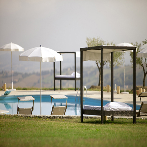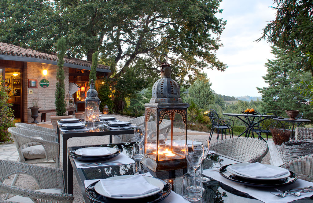 Thirty kilometers from the sea, at a 400 meters height, the Venue started in the Sixties as a farming estate. Old cultivations have been carefully preserved: 400 olive trees produce quality scented oil, the well kept garden gives fresh vegetables every day. From the cultivated fields comes organic food and hay for the horses, and a small pig farming gives tasty ham and other typical cold meat (salami, prosciutto crudo, bacon). In the 400 hectares reserve there are also woods and Mediterranean brush for walks, trekking, horse riding, all-terrain and quad excursions looking for the refuges scattered in the territory, a congress center, a spa, a tennis court, a pool with a summer restaurant, a horse riding stable, a playground and the fabulous restaurant. A unique and wonderful place where to crown a great event!