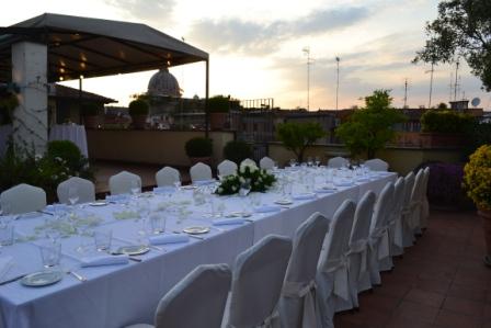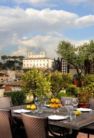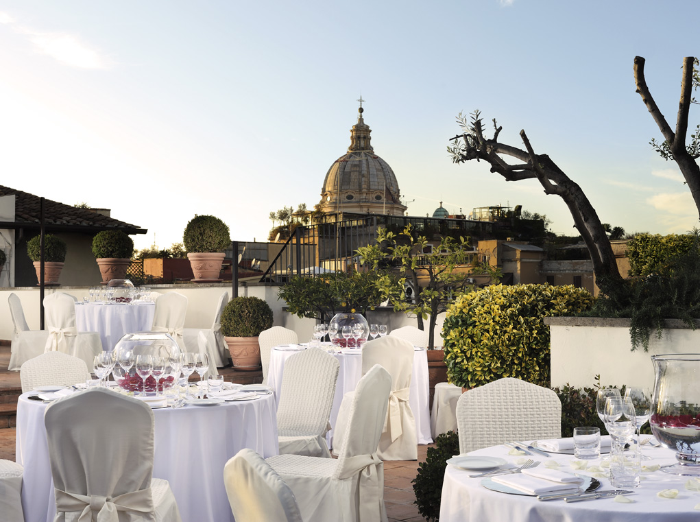 The 200 sqm terrace on the top floor of the hotel, offers a breathtaking view over the terracotta roof tops of the city, its balconies and domes. This Mediterranean roof garden adorned with jasmine flower and citrus fruit trees, is the perfect venue for dinners and private parties, events and prestigious ceremonies.