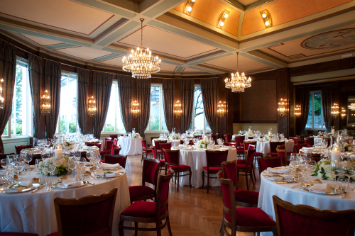 The hotel offers four reception halls overlooking the picturesque Lake: a ballroom of 275 sqm, with a capacity up to 240 seats; another reception hall of 150 sqm with a seating capcity of 140 guests, with annex a large terrace, perfect for an outdoors aperitif; another dining room, characterized by huge windows with wonderful view over the garden and the lake, that accommodate up to 160 guests; finally a more intimate dining room, ideal for small wedding receptions for up to 35 people, that's overlooking the porch which prelude to the garden and the lake.