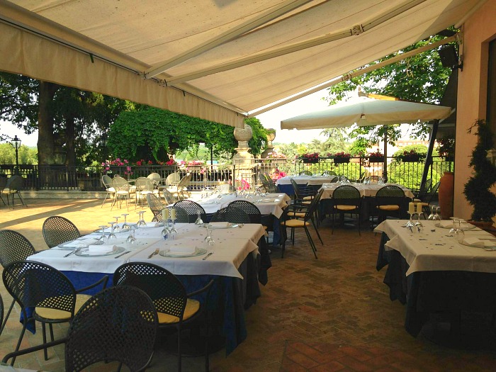 Garden with old trees and a large panoramic terrace overlooking the river. Terrace with american bar.
