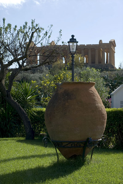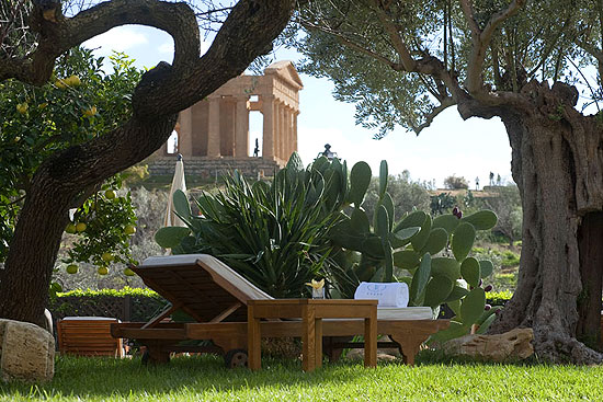 The garden surrounding the Villa and the Belvedere terrace, both set in front of the beautiful and most surprising view of the Valley of the Temples. Also by the pool, facing the greek Temple of Concordia.