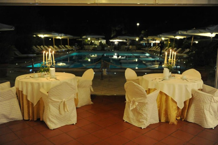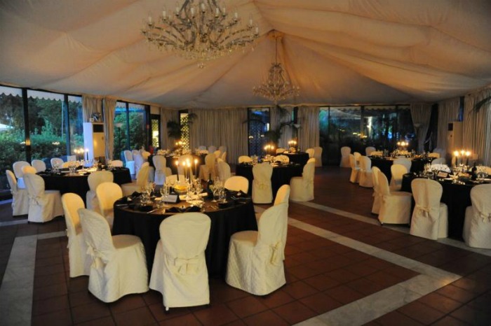The hotel has several halls, ranging from accommodation facilities designed for max 80 guests to reception halls that contain up to 150 people and also 250 people. The smaller dining rooms are inside the Villa, instead the most capacious reception venues are independent and located within the park of the Hotel.
