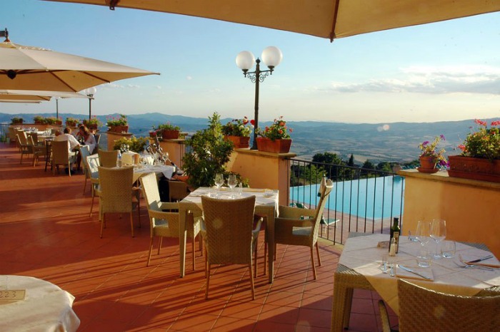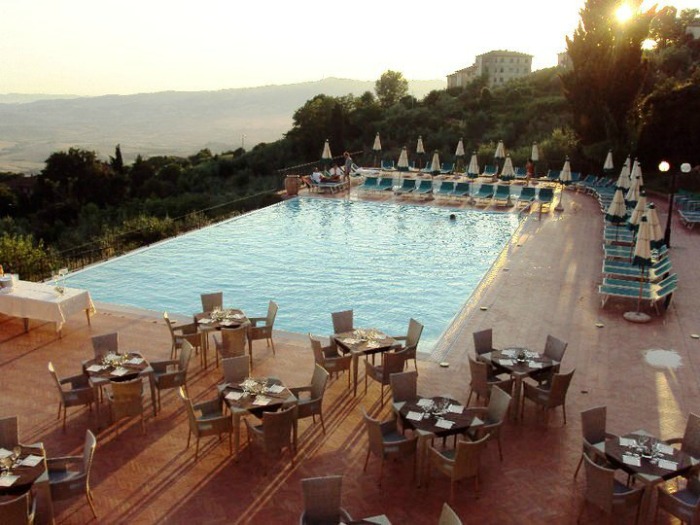 By the pool and the terrace of the Restaurant. Both venues offers breathtaking views on the Val di Cecina hills that border the sea at the horizont ...