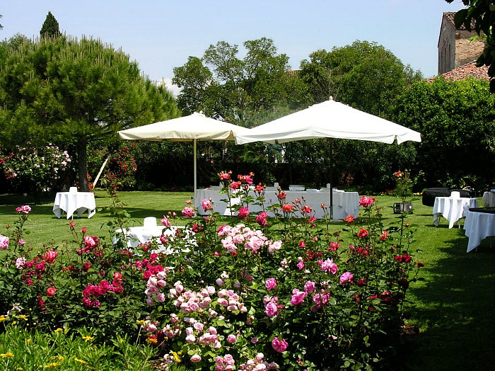 Outside, the Property is surrounded by beautiful flowered gardens and a terrace with view on the Venetian lagoon. The garden can accommodate up to 200 people.