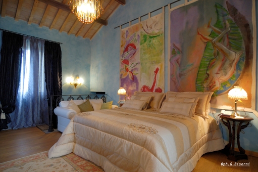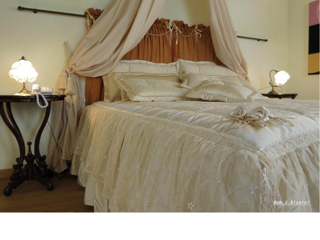 This Italian historic manor house is well known for its secluded location and sense of intimacy in Romagna countryside. The guests will appreciate the calm and welcoming ambiance from the moment they cross over its unique pergola of white roses. The hotel is located in the land between the Adriatic coast and the Apennine, in the green and luxuriant countryside, 18-minute scenic drive to Ravenna in the area were grapevines grow strong. The results of a research and a survey carried out in the last years testify that in this rural area and especially in a Village close to us, has been written the greatest number of folktales not only in Italy but also in Europe. The village seems to be wrapped in a magical atmosphere. One in particular is set in our Villa, which leads nowadays stuck in a wall outside a large ball of rock in which it was said, and still says, it contained the severed head of a dragon. So, our Villa will be the beginning also of your fairy tale, to lived happily ever after ...
