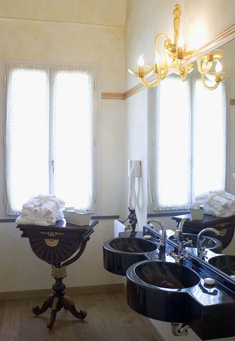 We have a frescoes lounge of about 60sqm from which you can reach the beautiful veranda of 120sqm that is overlooking the swimming pool and the huge park of the Villa.