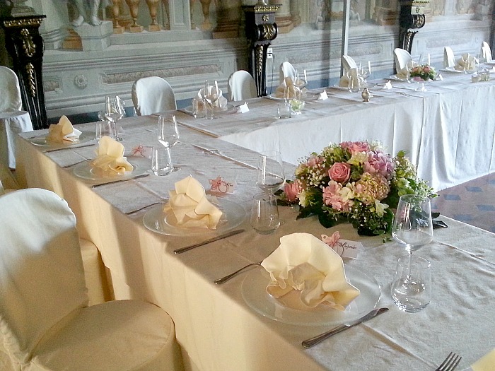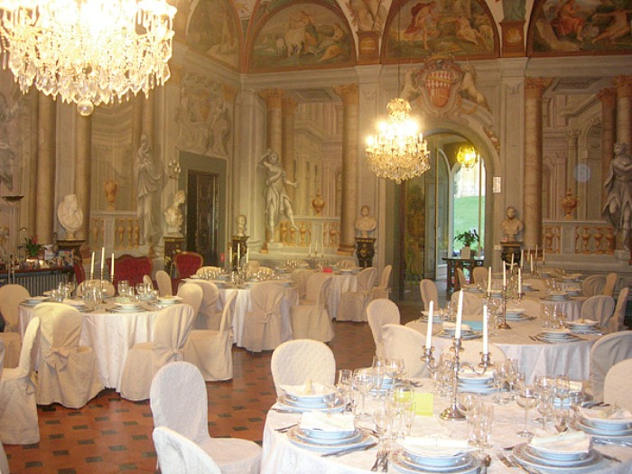 The ball room of the Villa, completely frescoed, is available for events. The old fifteenth century’s salt Cellars, the eighteenth century’s Farmhouse and the park can host such events as well. Everyone can reserve such spaces (or all) for a whole day. It is possible to use the Church inside the park as well to celebrate the civil or religious wedding within the villa.