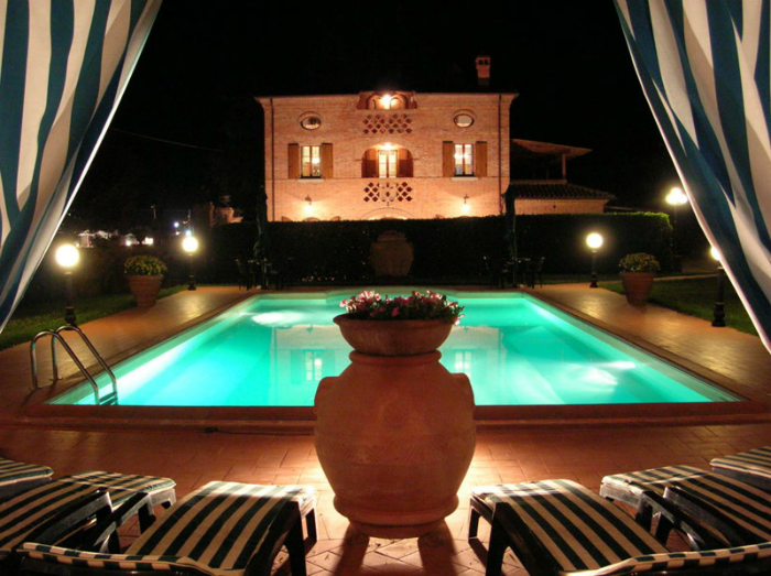 The Villa has been built in the 1925s and in axis with the house lies the beautiful swimming pool with Roman staircase and the original wood-and- bricks porch. The Villa with its garden is the ideal place for a fairytale wedding in the Tuscan countryside.