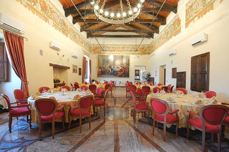 Inside, the Property is divided into several rooms decorated with frescoes, which date back to the period of the Castle, the old stables and the ancient theater of the castle, now restored to accommodate banquets.