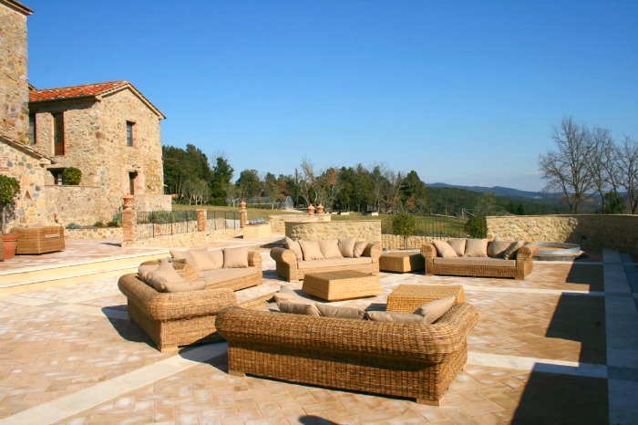 The farmhouse has 15 rooms furnished in typical Tuscan style.