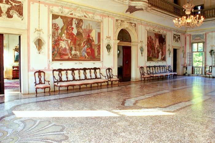 Venetian residence of the XVI century was enlarged, furnished and tastefully decorated in 1700. The front garden is built in Italian style, with a fountain, statues depicting the play of flowers, lawns and hedges. The park acres of lush, long rows meet a dovecote, a chapel and a large body of water. Inside the entrance hall, characterized by the Venetian floor, leads to other rooms and lounges furnished with furniture and decorative objects of the '700.