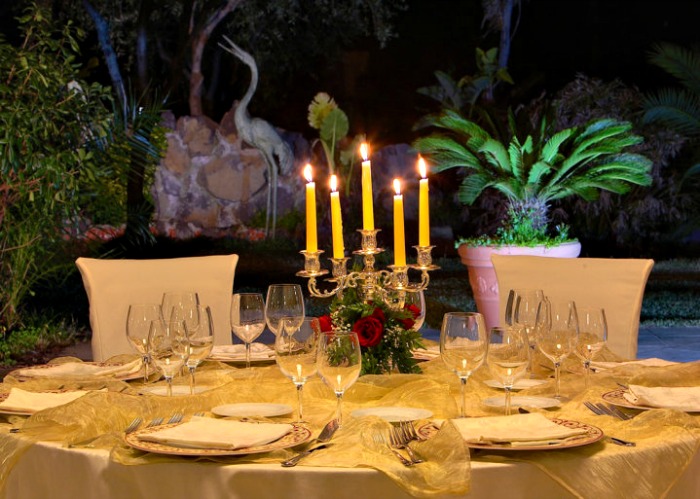 In the rooms and around the pool as possible until 00:00. Outside on the balcony until dawn.