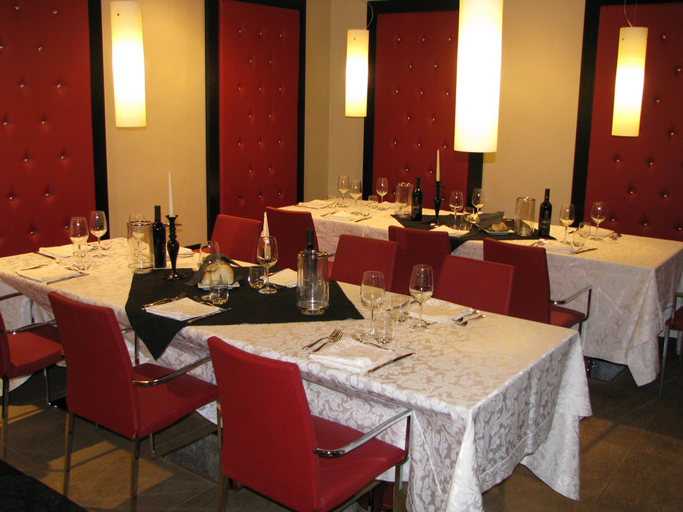 Dishes set up for each single person is cared in minute detail. Price includes table service, drinks, realization of choosen menu, mise en place .